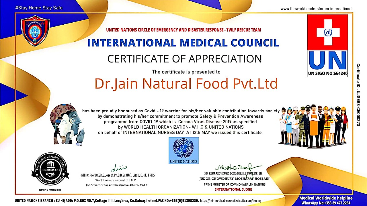 DR. JAIN NATURAL FOOD PRIVATE LIMITED WHO-GMP UQ-15513 UKCert